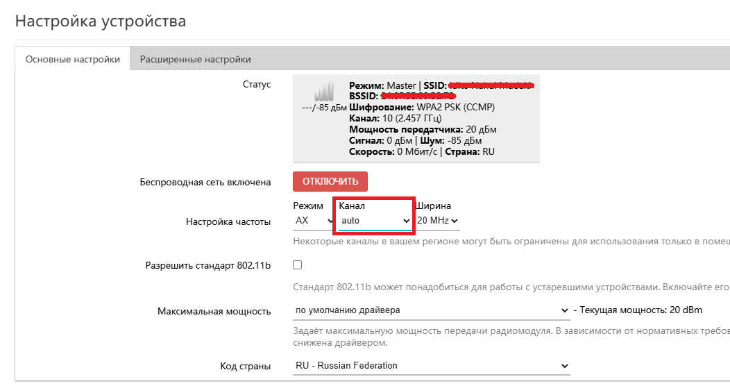 А где можно задать канал? В разделе список беспроводных сетей - тык по отключённой сети - изменить - не нашёл