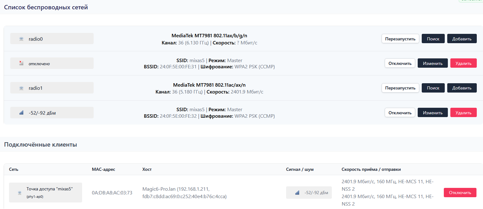 У вас 2.4 Ghz сеть почему-то запущена на частоте 6.1 Ghz, используя 36-й канал.